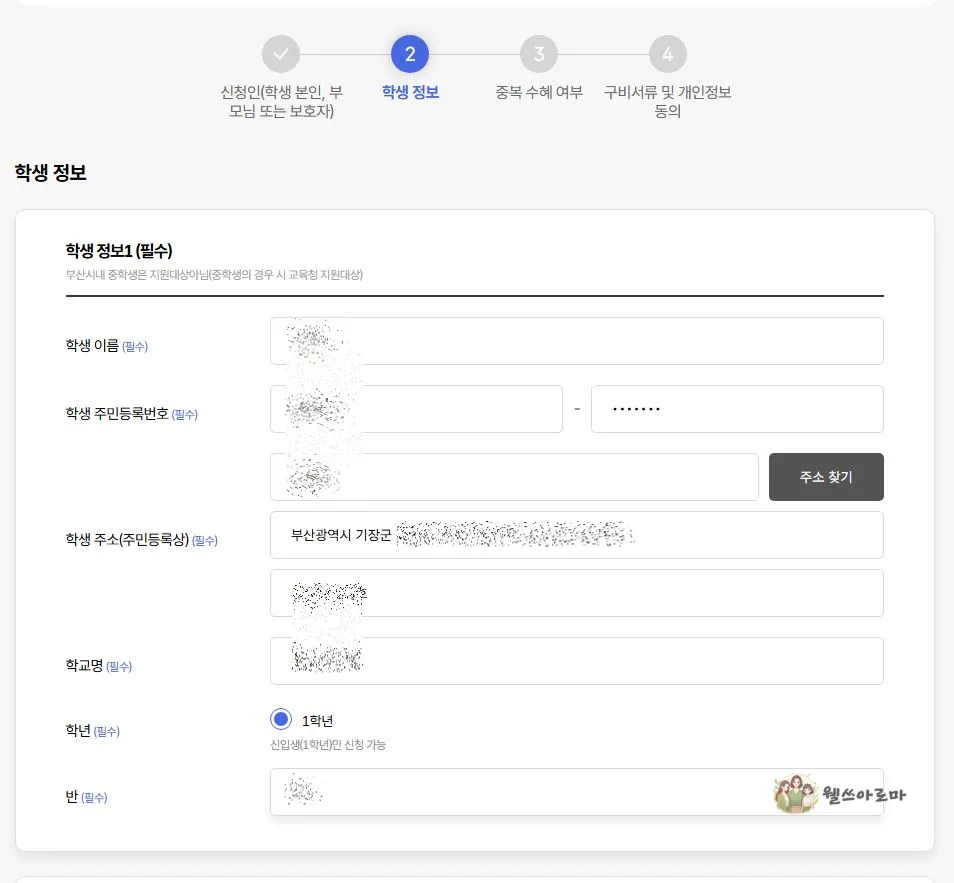 부산시외 학교 및 대안교육기관일 경우 재학증명서 첨부.