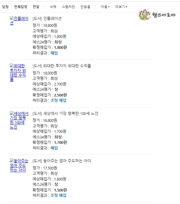 책 상태가 좋으면 최상 등급으로 꽤 많은 금액을 받을 수 있는 경우도 있다.